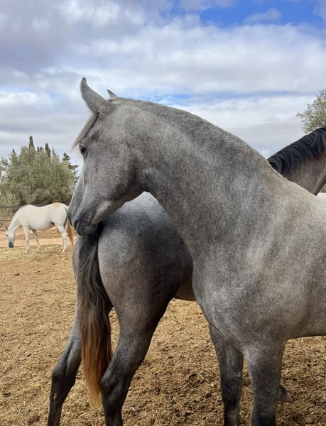 Velera XVII, a beautiful, baroque, strong filly with a top character, healthy, unbacked, always in the herd in freedom. Used to people, contact with me, and dogs. She is curious, brave, not scared; she is a very good filly to start working with. I am looking for a good new home for her (together or separately with the other filly/ mare of 4 years). I also speak German (I am German).