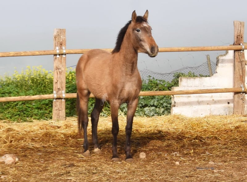 lieber Charakter, neugierig, roh, steht mit anderen Stuten draußen, groß, gute Bewegungen und Abstammung, Abstammung: Plaza de Armas, Yeguada Torreluna, Yeguada Vilaire, Opa Solano de Trujillo und Uropa Yaco de Torreluna sind qualifiziert www.elegante-andalusier.com