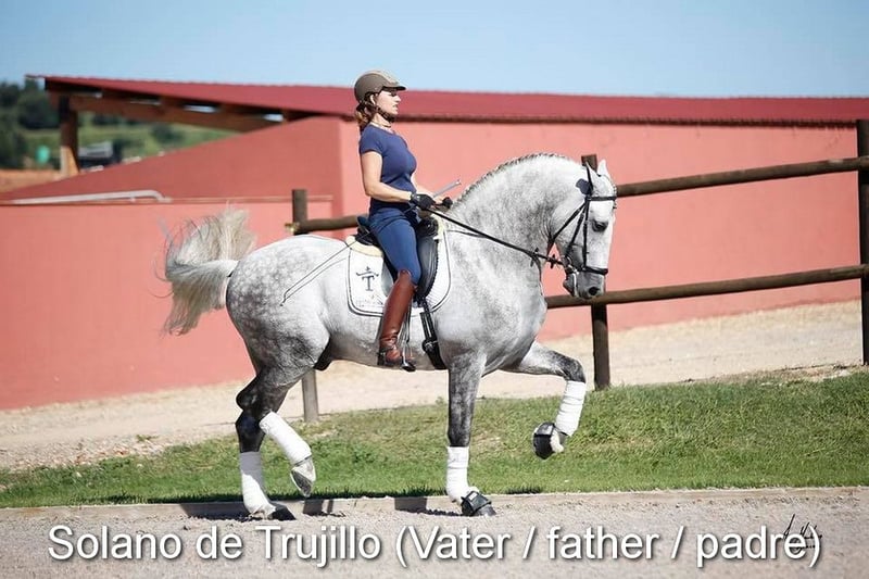 Lieve karakter, nieuwsgierig, ruig, staat samen met andere merries buiten, groot, goede bewegingen en afstamming. Afstamming: Plaza de Armas, Yeguada Torreluna, Yeguada Vilaire. Grootvader Solano de Trujillo en overgrootvader Yaco de Torreluna zijn gekwalificeerd. www.elegante-andalusier.com