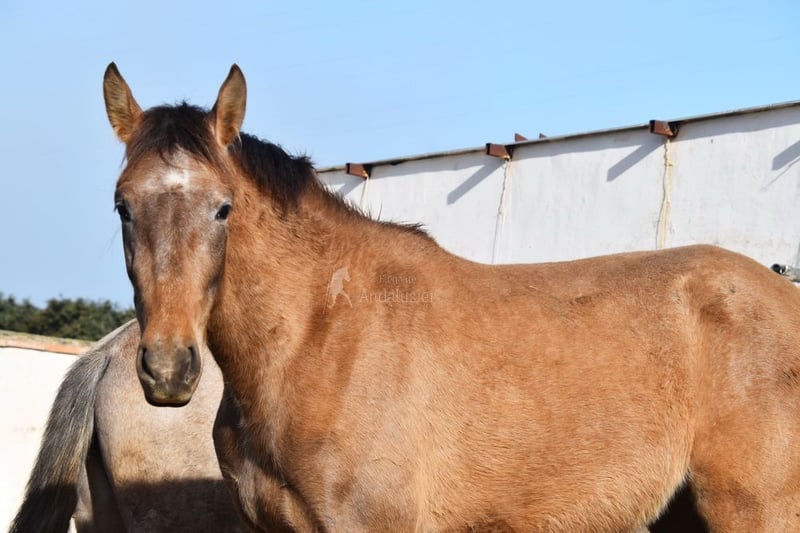 lovely character, curious, unbroken, stands outside with other mares, tall, good movements and pedigree, Pedigree: Plaza de Armas, Yeguada Torreluna, Yeguada Vilaire, Grandfather Solano de Trujillo and Great-grandfather Yaco de Torreluna are qualified www.elegante-andalusier.com