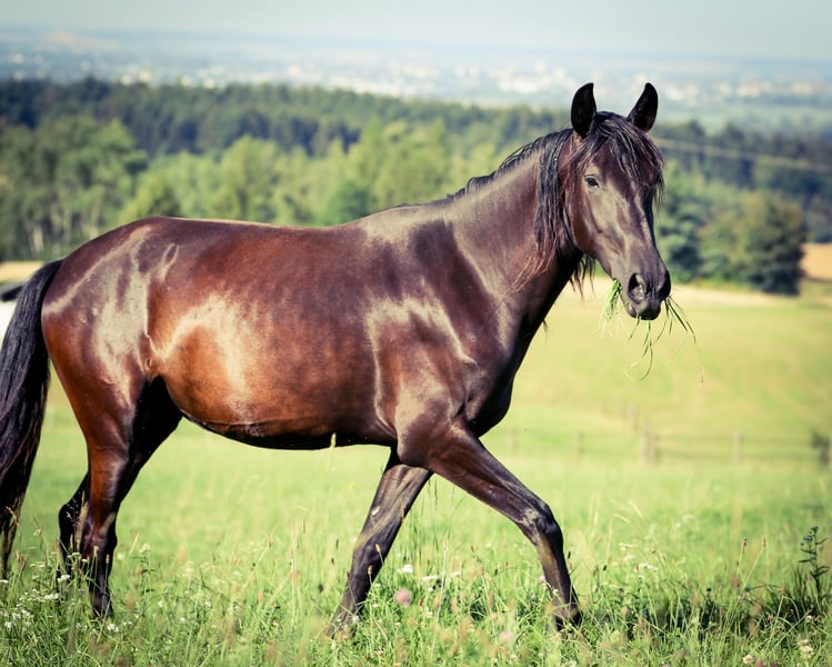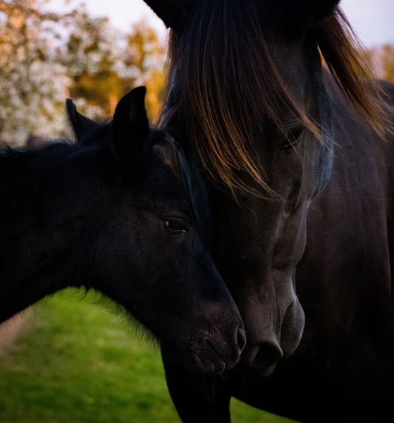 Alhaja ist eine sehr ausdrucksstarke junge Rappstute (Glanzrappe ohne Abzeichen) mit raumgreifenden Bewegungen.