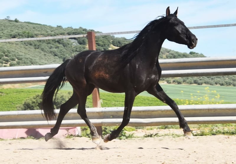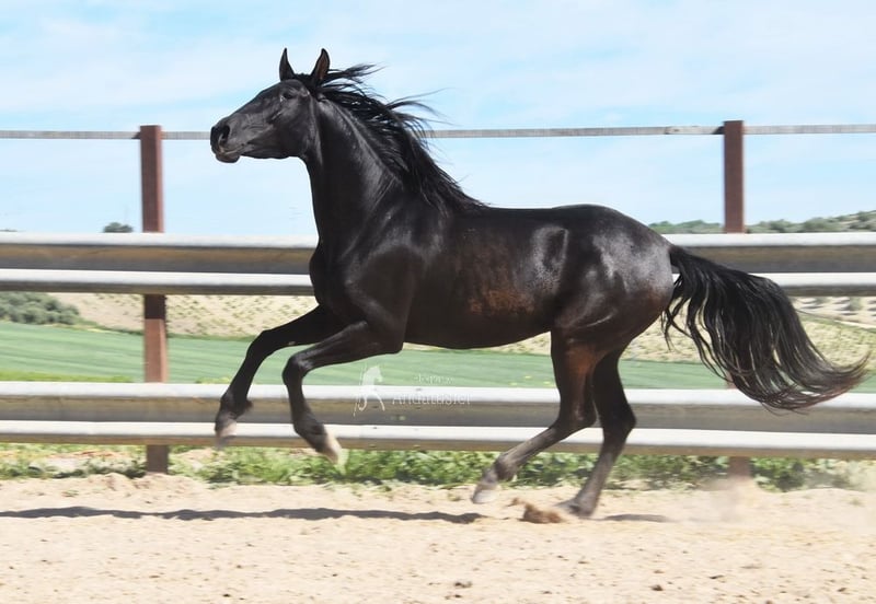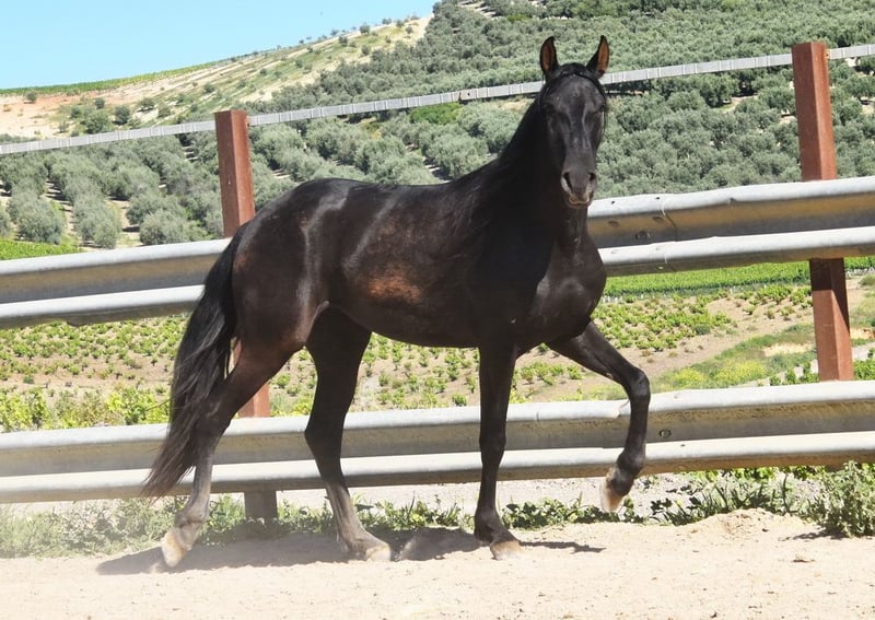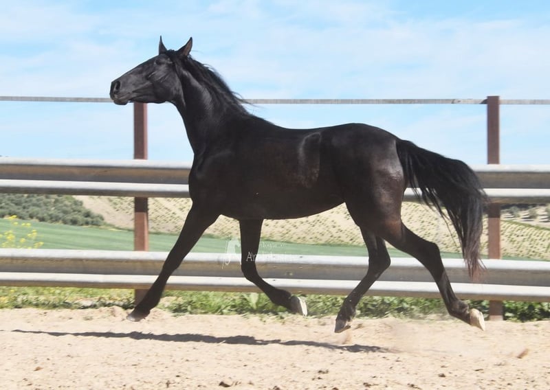 Caractère aimable, à l'état brut, vit dehors avec d'autres juments, bons mouvements et bonne lignée, Ascendance : Hnos Camacho Benitez, Gonzalo Valenzuela Ruiz, Escalera, l'arrière-arrière-grand-père Obcecado est qualifié www.elegante-andalusier.com