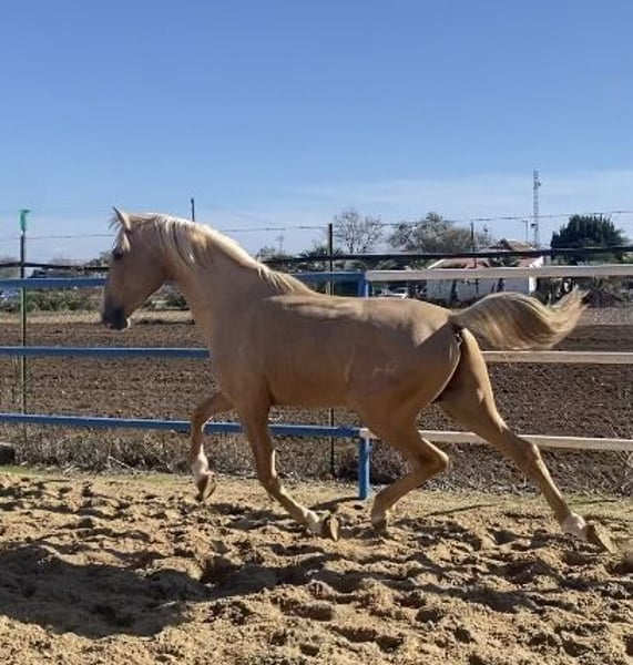 Eccellente cavalla Baya gravida di stallone Palomino nipote di Simpático de Millán III, allevatore miglioratore. Magnifica opportunità di acquistare una cavalla per la riproduzione o lo sport e di godere della sua eccezionale nobiltà, bellezza e superba genetica.