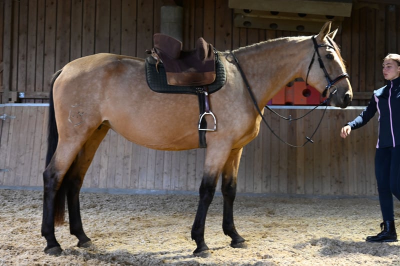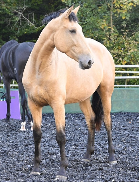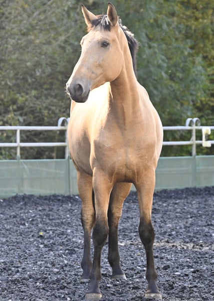 Silueta MAZ ist gekört und angeritten, sie ist eine PRE Stute die am 29.03.2021 geboren ist. Sie hat drei sehr gute GGA vor zuweisen. Ihr Stockmass beträgt 169cm. Sie stammt aus der Zucht von Junan Martos, eine Zucht der PREs Züchtet, in Sonderfarbe für den Dressursport. Er ist bekannt für eine sehr hore Qualität der Pferde, die kräftig und im Barocken Adel stehen und gross gewachsen sind. Alle Pferde aus der Zucht haben einen guten, ausgeglichen und klaren Charakter. Beide Eltern Seiten von Silueta sind auf Escalera-Linien und Yegada Militar zurück zu füren, Väterlicherseits ist hinten ein Hengst von Paco Marti drin, der ebenfalls ein sehr bekannter PRE züchter und sich auf Sonderfarbe spezialisiert hat mit sehr hoher Qualität und einer Gangmechanik für den Dressursport. Silueta MAZ wurde 2024 ANCCE gekört, sie ist eine Bayo Stute ohne weisse Abzeichen, der Gencod ist gg Aa Ee CCr NN. Mutter: Mandulis MAZ, Vater: Orión MAZ Gerne stellen wir Ihnen von Mo.-Sa die Pferde vor, ein Probereiten auf dem Platz oder im Gelände, Longieren und Bodenarbeit ist ihnen möglich, um ihr Traumpferd näher kennenzulernen. Dieses kostet 40€ pro Mal und wird beim Kauf wieder erstattet. Gebuchter Reitunterricht werden nicht Rückerstattet.