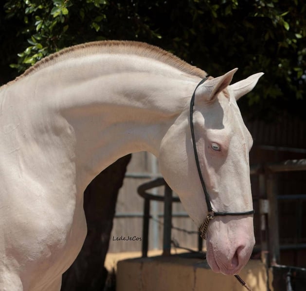 Wir präsentieren Ihnen unsere außergewöhnliche Albino-PRE-Stute, geboren im Jahr 2021, die sich nicht nur durch ihre beeindruckende Größe von 171 cm auszeichnet, sondern auch durch ihre einzigartige Schönheit und Eleganz. Ihr seltenes und exklusives Fell macht sie zu einem wahren Juwel in der Pferdewelt und zieht überall die Blicke auf sich. Diese Stute ist nicht nur optisch faszinierend – ihre Bewegungen sind wahrhaft außergewöhnlich, mit einer Eleganz und Leichtigkeit, wie sie nur die besten Pferde zeigen. Ihre exzellente Morphologie und perfekten Proportionen machen sie zur idealen Wahl für Züchter, die Pferde mit besonderen Eigenschaften in Aussehen und Bewegung züchten möchten. Ideal für Züchter, die hochwertige Genetik mit besonderen Farbschlägen kombinieren möchten, bietet diese Stute ein enormes Potenzial zur Weitergabe seltener Farben und beeindruckender Bewegungen. Dank ihres freundlichen und sanften Wesens ist sie nicht nur eine großartige Partnerin für die tägliche Arbeit, sondern auch ein echter Hingucker auf Turnieren. Verpassen Sie nicht die Gelegenheit, diese wundervolle Albino-PRE-Stute kennenzulernen – ein echtes Juwel und eine lohnende Investition für jeden Pferdehof. Kontaktieren Sie uns für weitere Informationen und lassen Sie sich von ihrem Charme verzaubern!