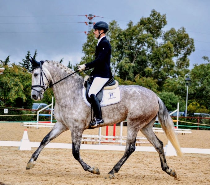 Diese elegante und wunderschöne Apfelschimmel-stute, möchte gern in ihr FOR EVER HOME vermittelt werden 🏡 Eine vielversprechende Dressurprinzessin überzeugt durch ihr harmonisches Erscheinungsbild, ihren sehr guten Grundqualitäten und ihrem beeindruckendem Gangwerk. Ihr ausgeglichener Charakter und ihr Sanftmut machen sie zu einer idealen Partnerin für ambitionierte Dressurreiter, die Wert auf Qualität und Leistungsbereitschaft legen. Sie ist gut geritten und zeigt eine solide Basis für die weitere Ausbildung im Dressursport, und ist,bei entsprechender Förderung, der zukünftige Stern im Viereck. Sie ist ein vielversprechendes Nachwuchspferd für den gehobenen Dressurbereich, das sowohl durch ihre Abstammung als auch durch ihr herausragendes Potenzial überzeugt. Ihr ruhiges und zuverlässiges Temperament lassen keinerlei Wünsche offen. Auch konnte sie schon Turniererfahrung sammeln und ist ruhig und entspannt - auch in fremder Umgebung. Auch geht die gern ins Gelände und es spielt keine Rolle, ob alleine oder in der Gruppe. Sie befindet sich auf einem soliden A*** Niveau und geht auch schon Außen-Galopp und einfache Galoppwechsel über Schritt und Trab. Mit dem richtigen Reiter und einem top Trainer,wird die die Konkurrenz im Viereck bald hinter sich lassen. Sie ist die perfekte Wahl für den anspruchsvollen Reiter/in. Aufgrund ihrer Größe von 1,75 m deckt die auch sehr große Reiter ab. Wer ein ganggewaltiges und qualitätsvolles Nachwuchspferd sucht, meldet sich bitte mit Telefonnummer, damit ich schnellstmöglich Kontakt zu Euch aufnehmen kann. Standort Spanien Nähe Sevilla. Wir haben eine große Auswahl an verschiedenen Pferden - vom Fohlen bis zum Gran Prix Pferd 🐎🐴 hu