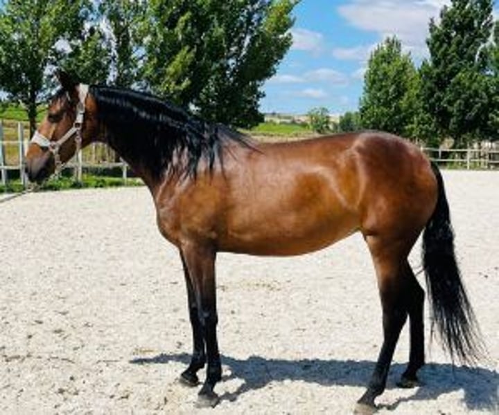legance, talent and pleasure in the saddle Some horses are made to shine. This mare is the perfect example. With three high-quality gaiters, natural balance and exceptional comfort, she combines everything you look for in a modern dressage horse. Every stride is fluid, every transition is light, and her contact with the hand is remarkably fine. Sensitive and reactive, she responds to aids with precision, always forward, without ever opposing. Her energy is channeled, her mind is clear: she understands quickly and always wants to do well. Riding this mare is feeling an immediate connection, a lightness that makes you want to ask for more. A real pleasure for a horse rider amateur wishing to progress and enter competition with a horse that makes his work easier. She is also a safe choice: her X-rays are excellent and she is free of piroplasmosis. A guarantee of serenity for those who will seek a long-term partner in her. At IberHorse, we have been selecting horses that combine quality and pleasure for over 13 years. Because choosing well is already success. Let's talk about it.