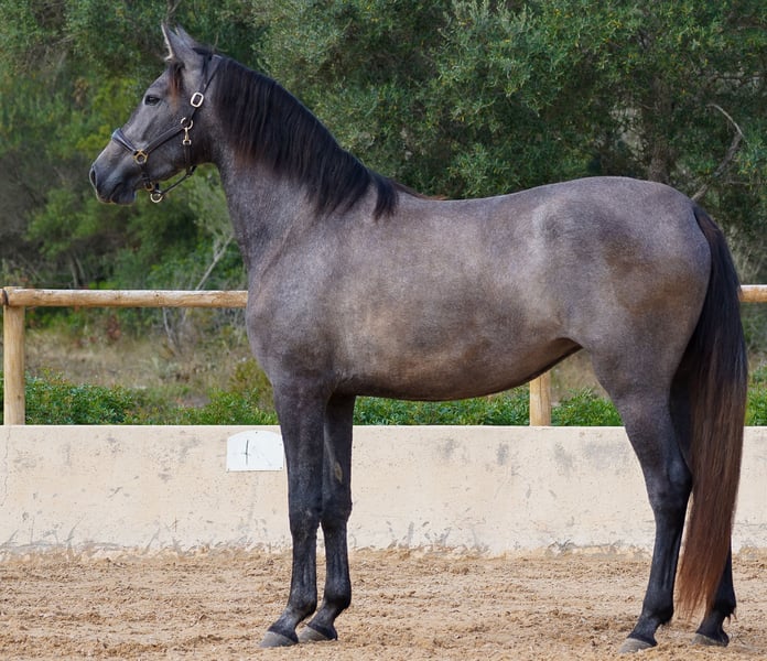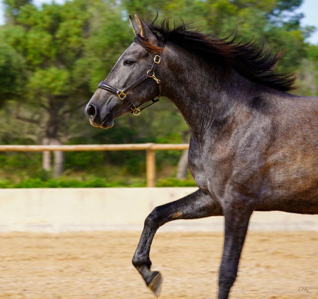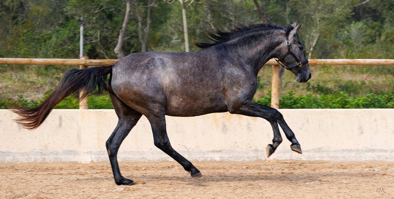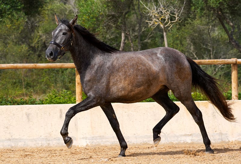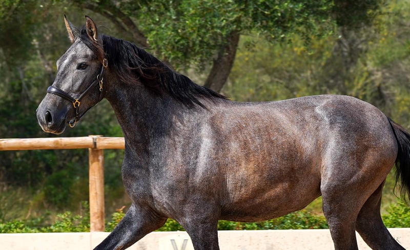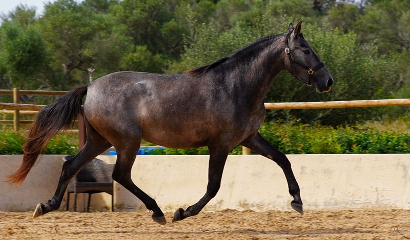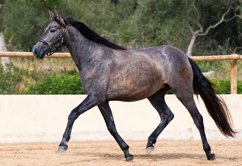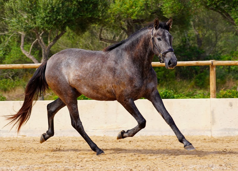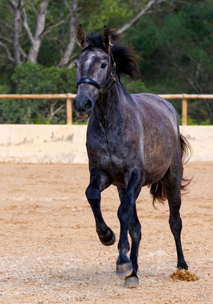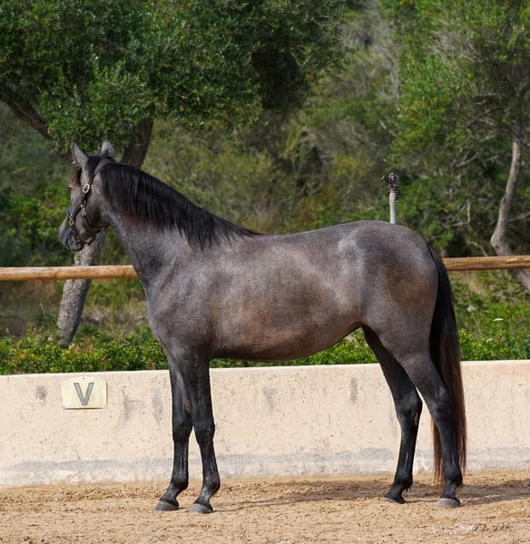 Bienvenue dés Ravella We are delighted to introduce you to our enchanting Bienvenue. Born on May 11, 2020 at our stud farm Es Ravella des Cavalls in the picturesque east of Mallorca, she is the proud result of the connection with the great dressage stallion Poeta de Susaeta by Yeguada Susaeta. Bienvenue grew up lovingly in a small herd and has developed into a true beauty. A little shy at first, she quickly gains confidence when given security and affection. She is curious and wants to get to know her people. Bienvenue has now been ridden and impresses with her willingness to work, her ease of riding and her breathtaking gaits. She is gentle and shows her best side both when being ridden and lunged. A real gem that also promises great potential for breeding. Blessed with unbeatable genes, Bienvenue combines outstanding pedigree lines. Poeta de Susaeta, Cacique IX and Ermitaño II x Oficial XXIX can be found on the sire's side, while Mañoso II, Orfebre and the stallion Judio VII are represented on the dam's side. (Yeguada Ferrero x Yeguada Vilaire) Her eyes have always fascinated us - Bienvenue is a mare of sincere honesty! She offers a comfortable seat and strives to please her people. Whether alone or in company, she loves to go off-road and enjoys exploring new trails. With a current height of 1.60m and still some potential for growth, we estimate that Bienvenue will probably reach a final height of around 1.63/1.64m. Bienvenue is a wonderful girl who will undoubtedly bring a lot of joy to her future owner. Please contact us for more information about this unique horse! We look forward to hearing from you and telling you more about Bienvenue. We will be happy to help you with transportation. Contact us, we also do live calls so you can experience the horses in all their glory. welcome@es-ravella.com +491733630077 +34634314244