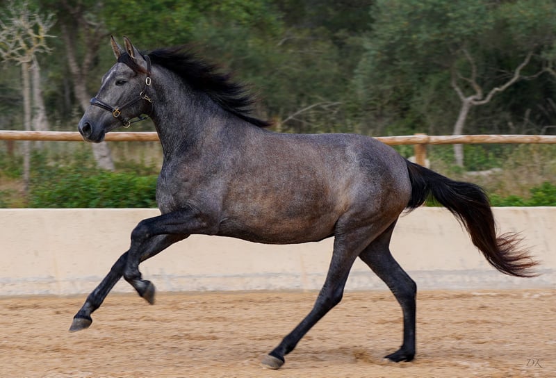 Bienvenue dés Ravella - Reserviert Von POETA DE SUSAETA Wir freuen uns, Ihnen unsere bezaubernde Bienvenue vorzustellen. Geboren am 11. Mai 2020 auf unserem Gestüt Es Ravella des Cavalls im malerischen Osten Mallorcas, ist sie das stolze Ergebnis der Verbindung mit dem großartigen Dressur Hengst Poeta de Susaeta der Yeguada Susaeta. Sein Vater Cacique IX ist ein Supreme-Elite-Hengst. Er ist der einzige schwarz gefärbte Hengst, der alle 5 möglichen Abzeichen für einen reinrassigen spanischen Hengst hat. Sein Großvater väterlicherseits, Ermitano III, war der erste Hengst, der zur Elite gekrönt wurde. Fer Agora von Yeguada Ferrero Mañoso II gepaart mit Judio VII. Alle diese Hengst sind von hervorragender Abstammungen und haben viele Erfolge vorzuweisen und das kann man bei Bienvenue auch bewundern. Diese Stute macht sich so unglaublich grandios und lernt so schnell, dass man sie deutlich bremsen muss. Sie hat so viel Freude an der Arbeit! Bienvenue wuchs liebevoll in einer kleinen Herde auf und hat sich zu einer wahren Schönheit entwickelt. Anfänglich etwas schüchtern, doch schnell gewinnt sie Vertrauen, wenn ihr Sicherheit und Zuneigung entgegengebracht werden. Sie ist neugierig und möchte ihre Menschen kennenlernen. Inzwischen ist Bienvenue geritten und beeindruckt durch ihre Arbeitswilligkeit, ihre Leichtrittigkeit und ihre guten Grundgangarten. Sie ist sanftmütig und zeigt sich sowohl beim Reiten als auch beim Longieren von ihrer besten Seite. Ein wahres Juwel, das auch für die Zucht großes Potenzial verspricht. Mit unschlagbaren Genen gesegnet, vereint Bienvenue herausragende Abstammungslinien. Auf der väterlichen Seite finden sich Poeta de Susaeta, Cacique IX und Ermitaño II x Oficial XXIX, während auf der mütterlichen Seite Mañoso II, Orfebre und der Hengst Judio VII vertreten sind. (Yeguada Ferrero x Yeguada Vilaire) Schon immer faszinierten uns ihre Augen – Bienvenue ist eine Stute von aufrichtiger Ehrlichkeit! Sie bietet ein komfortables Sitzgefühl und strebt danach, ihren Menschen zu gefallen. Ob alleine oder in Gesellschaft, sie liebt es, ins Gelände zu gehen und erkundet gerne neue Wege. Mit einem derzeitigen Stockmaß von 1,65 m. Bienvenue ist ein wundervolles Mädchen, das ihrem zukünftigen Besitzer zweifellos viel Freude bereiten wird. Kontaktieren Sie uns gerne für weitere Informationen über dieses einzigartige Pferd! Wir freuen uns darauf, von Ihnen zu hören und Ihnen mehr über Bienvenue zu erzählen. Wir bieten Hilfe weltweiten Transport an. Kontaktieren Sie uns, Live Calls sind ebenfalls möglich, damit Sie die Pferde in ihrer ganzen Pracht erleben können. Wir freuen uns aber am meisten wenn Sie uns persönlich besuchen kommen um die Pferde kennen zu lernen. welcome@es-ravella.com +491733630077 +34634314244