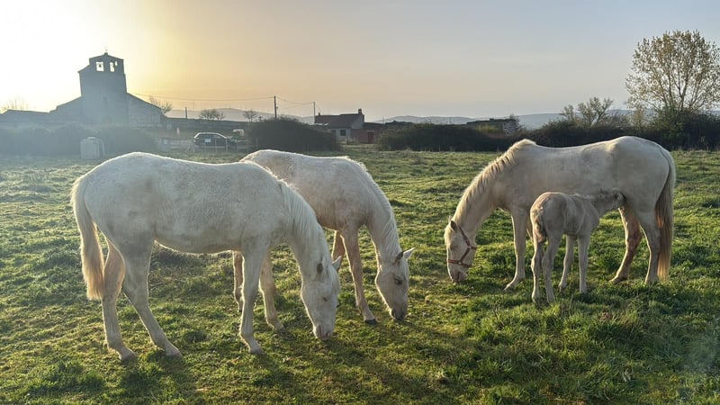 En venta espectacular yegua Pura Raza Española (PRE), de capa Perlina (confirmada genéticamente: ggEeAACrCr), parida el 08/04/2026. El lote incluye: 1. Yegua FENDI DE LA SIERRA (5 años): • Estado: Apta como reproductora por ANCCE. • Alzada: 1,63. • Carácter: Excelente, criada en libertad, muy noble y gran madre. • Genética: Doble dilución Cream. Garantía de transmitir color a su descendencia. 2. Potra lactante (1 mes): • Nacida en abril de 2026. • Capa: Perlina o Bayo Perla (hija de semental Bayo Perla ggEeAaCrPrl). • Una potra con mucho hueso, gran morfología y futuro para cría o deporte. Puntos clave: ✅ Calidad genética contrastada (Papeles ANCCE al día). ✅ Criadas en libertad, garantizando salud y equilibrio mental. ✅ Oportunidad inmediata para ganaderos: se vende el conjunto listo para trasladar. Precio: 8.500 € (Posibilidad de transporte internacional a Alemania/Europa). 📍 Contacto por WhatsApp para más vídeos y árbol genealógico: +34 628 23 45 94