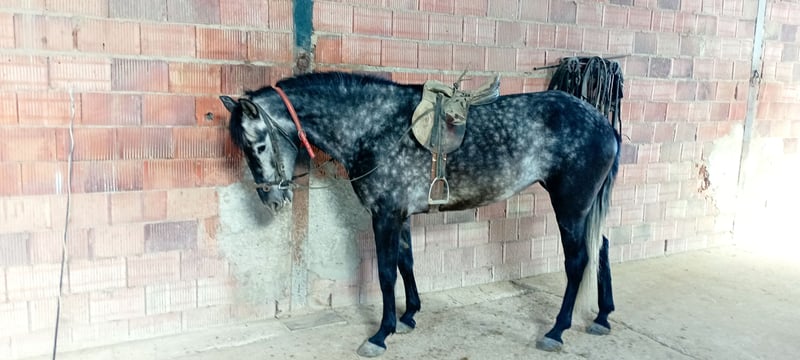 Excellent opportunity to acquire a beautiful and versatile mare! Main features: - Breed: PRE (Pure Spanish Horse) - Gender: Mare - Year of birth: 2020 - Color: Roan - Height: 16.1 hh - Use: Ideal for leisure and fun This mare combines beauty, character, and a good temperament, making her perfect for those seeking a reliable and elegant horse for trail rides, dressage, or recreational activities. Feel free to contact us for more information and to arrange a visit. An excellent opportunity for horse lovers!