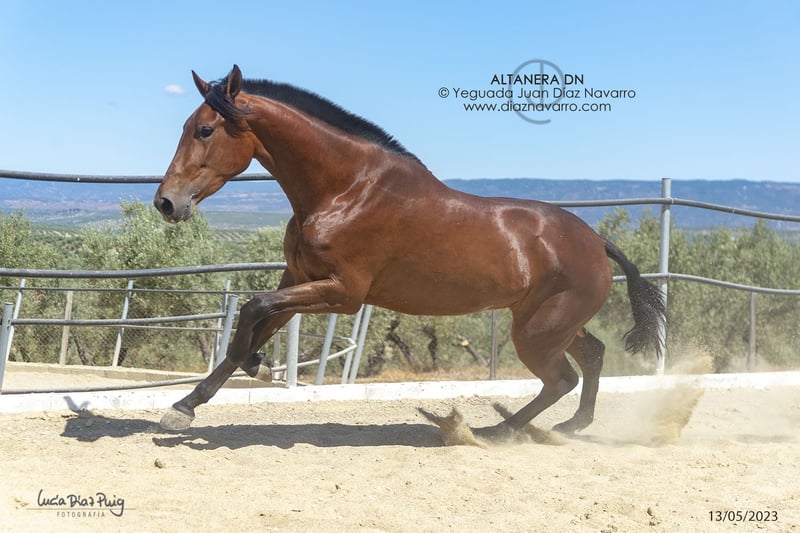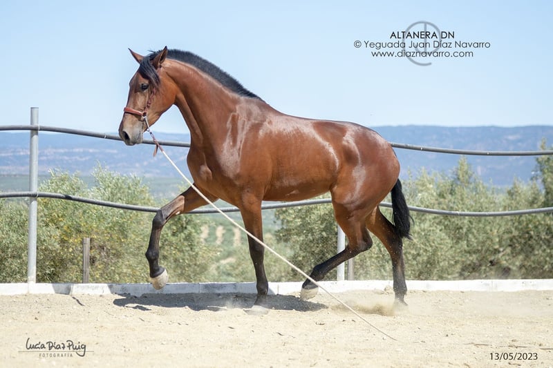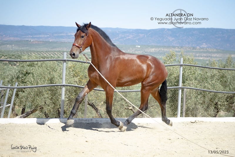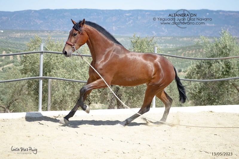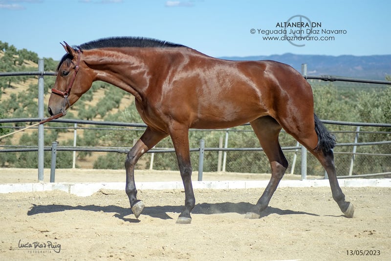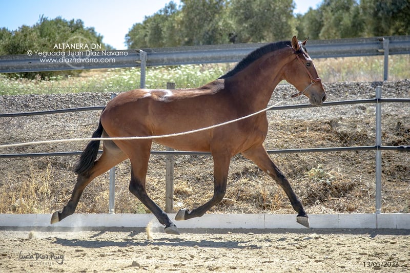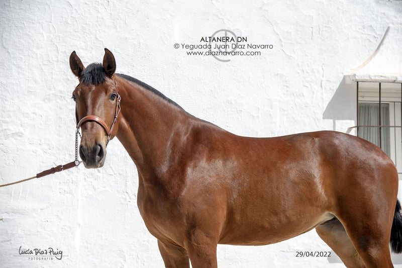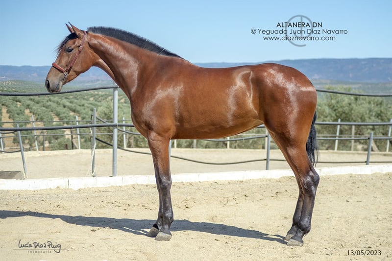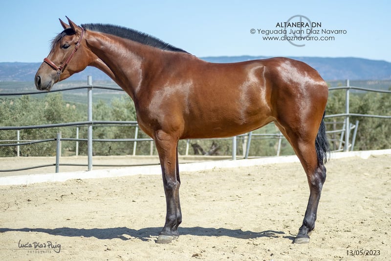 ¡Oportunidad de venta de una hermosa yegua de calidad! https://diaznavarro.es/altanera-dn Se ofrece en venta una yegua de PRE, nacida en el año 2020. Es de color castaño y cuenta con una alzada de 174 cm, lo que la hace imponente y elegante. Capa genética (genotipo): ggAAEECCNN Alzada: 1’74m a la cruz Doma: inicios de doma hace un par de años. Bella yegua con mucha clase y talla. Líneas: Lebrijano III, Lego, Remache, Cepellón, Velero XI, Llamativo II. Yeguada Militar, D. Benito Zoido, Vizconde de la Montesina. No pierda la oportunidad de adquirir una yegua con excelentes características y un linaje destacado. Para más información y detalles, no dude en contactarnos.