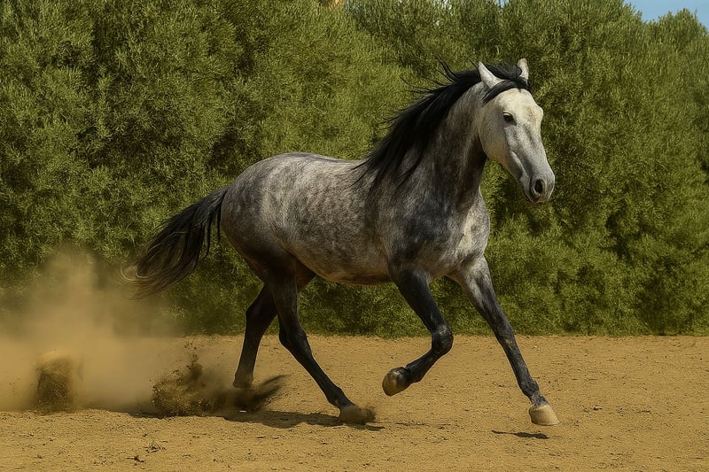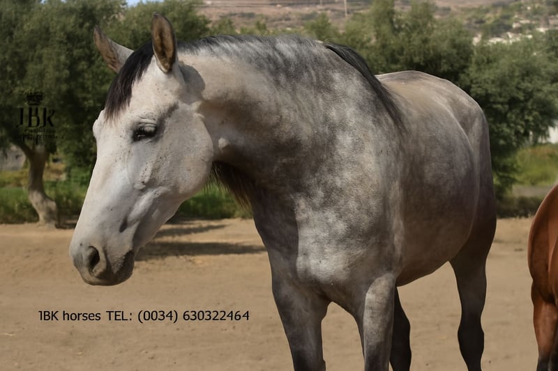PRE Mare Oprah – Licensed – Looking for a new home #jbk #jbkhorses #sp ☎️WHATSAPP 🇪🇸 003463022494 Here you can see her grandfather EDUCADO X, bred by Guardiola. Anyone familiar with the breed will immediately recognize that this is a quality horse. A beautiful PRE mare with excellent Go and impressive movement dynamics, combined with a very friendly, honest character. Oprah will likely be of interest for breeding in the future, as well as for dressage or working equitation. She comes from a peaceful home where she has never experienced any harm. Born on July 15, 2019, with a height of 1.60 m. Currently, Oprah has a foal at her side, which can be weaned relatively soon. Prior to her pregnancy, she was also backed and ridden.