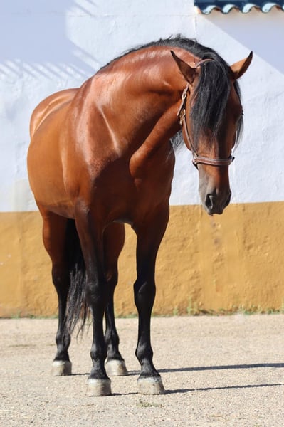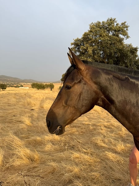 Jument PRE pleine de ventre à vendre à un prix exceptionnel ! Nous proposons ici une jument PRE brute et pleine de ventre. Nous nous en séparons car nous réorganisons complètement nos lignées de reproduction, ce qui explique sa mise en vente. CE N'EST ABSOLUMENT PAS UNE VENTE D'URGENCE ! Elegida est une jument foncée et calibrée, dotée d’un caractère irréprochable. Elle est très proche de l’humain et toujours très attentive. La monte, que nous pouvons également prendre en charge, ne devrait poser aucun problème. Elle est actuellement pleine. Le père du poulain est Maradona, également visible sur les photos ci-dessous. Il est lui aussi présent sur notre élevage et a déjà engendré de nombreux foals. Son tempérament est irréprochable. Ce cheval représente une opportunité exceptionnelle, tant par son prix que par la qualité de ce que l’on reçoit ! Il n’y a absolument rien à redire. Cela s’explique notamment par le fait que tant la jument que le père du poulain disposent d’un pedigree sans faille. De Escalera à Yeguada Militar, tout ce qui a de la renommée et du prestige est représenté. N’étant pas des marchands et aimant profondément nos chevaux, nous ne vendons en aucun cas à des marchands ou des écoles d’équitation. Le prix est hors frais, livraison en Allemagne.