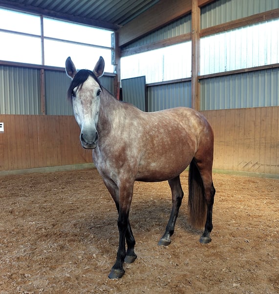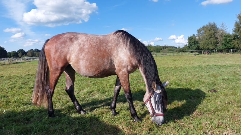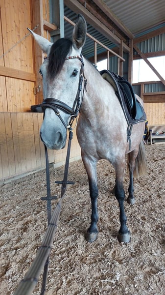 I am reluctantly selling my dear, sensitive PRE mare to a good home due to personal circumstances. She has ANCCE papers and a recent veterinary examination with various findings from 2/25. She is vaccinated against influenza, herpes, and tetanus. She is barefoot and has no issues with hoof trimming. Due to her excellent pedigree, she is also suitable as a broodmare. In handling, she is very polite towards humans and well-socialized in a herd. She is eager to learn, intelligent, and approaches everything new with curiosity. However, she needs time to get to know her person. She is still at the beginning of her potential and requires an experienced rider with a gentle touch.