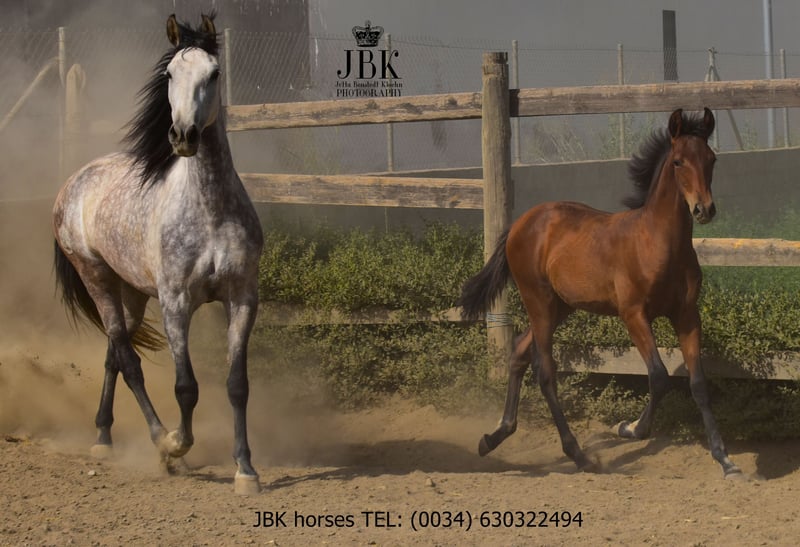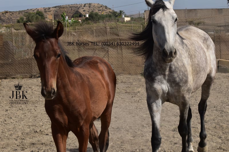 Here you can see the Guardiola-bred grandfather EDUCADO X from the Guardiola breeding right away. Those knowledgeable about breeds know that this is a quality horse. A wonderful PRE mare with great go and impressive dynamics in her movement, and a very friendly, honest character. OPRAH will surely be interesting later for both breeding and as a dressage or working equitation horse. She comes from a peaceful home where she has never experienced any harm. Born on July 15, 2019, with a height of 1.60 m at the withers. Oprah currently has a foal at foot, which can be weaned relatively soon. She was also started under saddle before her pregnancy. Free of melanoma!!!!