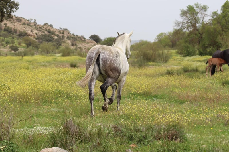We would like to part with one of our breeding mares due to a change in our breeding program. Pintas is eight years old and completely unused. She is employed as a breeding mare at our stud farm because, in addition to her impressive appearance, she has a pedigree that is truly beyond any doubt. She has not been worked, which, given her character and her affectionate nature, is more of a pleasure than a lot of work. The price is really top because she is in foal. (Photos of the stallion can also be seen here.) If you are looking for a horse for the next 20 years, you really can't go wrong here. She is truly perfect both as a breeding mare and as a riding or leisure horse. We would be happy to assist you with the viewing in Spain if you are interested. We generally do not sell to horse dealers or riding schools. For further questions, I am very happy to assist you in Germany.