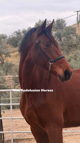 Beautiful PRE Mare x Hannover 9 years old / 1.80 m. Yes, she is a tall girl with an incredible temperament. She is very calm, sweet, and friendly with people! She is ridden, with basic training including half-pass and is very safe. Suitable for a hobby rider and family! For more information, please contact us: Alex Andalusian Horses (+34) 657 314 412 Follow us on our social media! We have over 100 horses available! We organize vet checks, transport, documentation, and more.