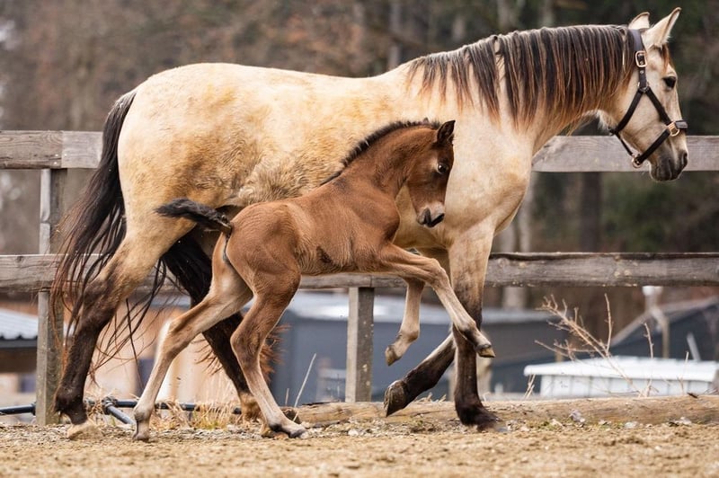 lieber Charakter, verschmust, verspielt, roh, steht mit ihrer Mutter und anderen Stuten und Fohlen draußen, barock, Braun mit Pearl-Gen, STANDORT ÖSTERREICH, Abstammung: Paco Marti, Hnos Camacho Benitez, Yeguada la Llana, Antonio Cuenca Delgado, Ururopa Gaucho III ist qualifiziert www.elegante-andalusier.com