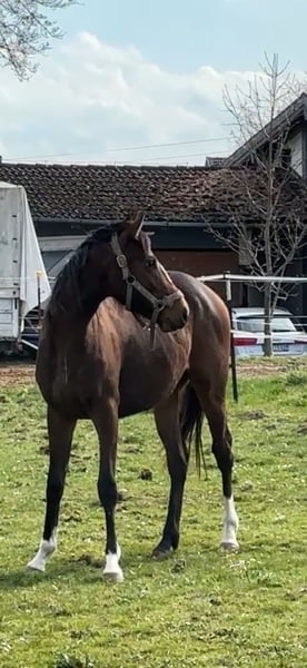 Verkaufe vielversprechenden englischen Vollbluthengst, geboren im Jahr 2024. Der braune Nachwuchs besticht durch seine elegante Erscheinung und sein vielversprechendes Potenzial für die Vielseitigkeit. Mit einem Stockmaß von 167 cm verfügt er über die ideale Größe für den anspruchsvollen Einsatz in der Vielseitigkeit, aber auch für andere Disziplinen im Vielseitigkeits- , Distanz- oder Springsport oder aber auch für die Freizeit. Der junge Hengst ist bereits lässt sich brav aufhalten und führen und ist verträglich mit anderen Pferden. Dennoch braucht der junge Mann eine kompetente und erfahrene Bezugsperson die ihn weiter ausbildet. Wir haben für ihn nicht genügend Zeit da er uns sehr fordert und wir ihm hier nicht die Zeit schenken können die er braucht. Ein tolles Pferd für ambitionierte Reiter, die einen talentierten Nachwuchs suchen. Bei Interesse stehe ich gerne für weitere Informationen und eine Besichtigung zur Verfügung.