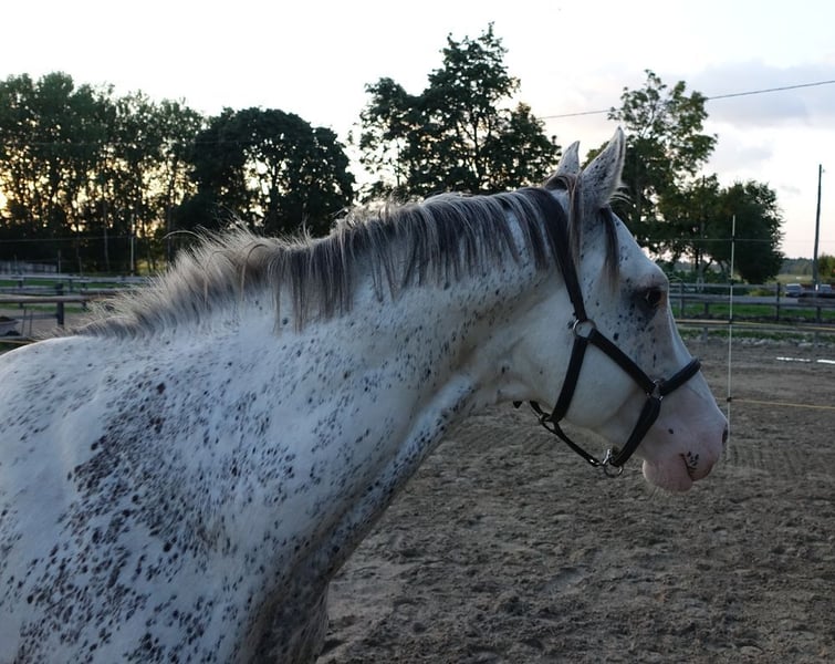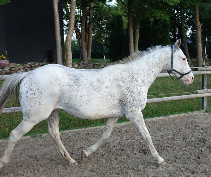 Extra rare coloured thoroughbred stallion! Full pedigree linked below. Born in 2019, 160 cm at the withers. Guchilingui is registered with the Estonian Sporthorse Society studbook, which is full member of the WBFSH. He expresses a very prominent Dominant White (now referred to as "WHITE SPOTTING") gene. Additionally he has dilution, with his base colour being BUCKSKIN (although this is not visible due to extremely loud white spotting) Guchilingui is great-grandson of the legendary stallion Puchilingui xx, and therefore carries the W5 white gene. He is a completely healthy horse with flawless x-rays (taken in 2024, covering legs and back). He is ridden and has jumped also small obstacles. Guchi also shines with his outstanding character – he has a very good temperament and is easy to work with. He has spent his entire life after weaning in a herd of other stallions/ geldings without any issues. He is also well-behaved in the stable/box and during loading/ travelling. Steht in Estland, direkt vom Züchter- kann problemlos nach Deutschland gebracht werden, die Kosten belaufen sich auf ca. 600-800 Euro. Wir haben über 20 Fohlen nach Deutschland verkauft. https://sporthorse-data.com/pedigree/guchilingui-xx anneli.kadakas@gmail.com https://www.facebook.com/reinu.talu