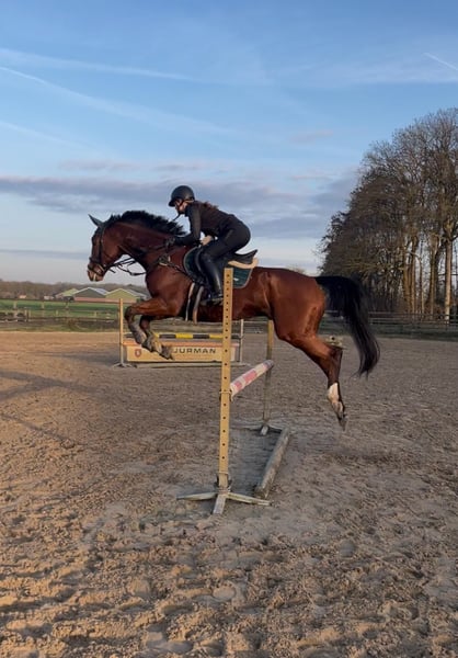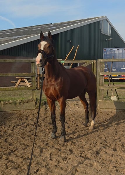 Limoncello ist ein wunderschöner Wallach (1,68 m) des bekannten irischen Hengsts Sans Frontieres (v. Galileo). Dank seiner erstklassigen Blutlinien verfügt er über eine enorme Arbeitsbereitschaft, Ausdauer und ein gelassenes, aber vorwärts orientiertes Temperament. Er ist freundlich im Umgang, sozial gegenüber anderen Pferden und leicht zu verladen. Auch alleine unterwegs zu sein, stellt für ihn kein Problem dar; er ist verkehrssicher und genießt Ausritte im Wald oder am Strand. Limoncello ist ein echter Allrounder, der am liebsten aktiv beschäftigt wird. Er ist in der Dressur (Klasse B), im Springen (80/90 cm, gelegentlich auch 100 cm) und hat Erfahrung im Geländereiten. Er zeigt sich im Parcours sehr begeisterungsfähig, was ihn zu einem Vergnügen für Reiter macht, die vorwärts gerichtet reiten möchten. Dabei benötigt er jedoch eine klare, selbstbewusste und geduldige Hand. Bei Limoncello wurde eine leichte Form von Kissing Spines diagnostiziert. Er zeigt derzeit keine Beschwerden, doch dies erfordert einen Besitzer, der versteht, dass regelmäßiges Training (z. B. korrektes Longieren), ein gutes Aufwärmen und Pflege notwendig sind, um ihn beweglich und schmerzfrei zu halten. Deshalb suchen wir einen Reiter, der ihn vor allem freizeitmäßig reiten möchte und Dressur nicht als Hauptziel verfolgt. Wir suchen für Limoncello ein liebevolles und engagiertes Zuhause bei einem verantwortungsbewussten Reiter. Aufgrund seines vorwärts gerichteten Charakters ist er weniger geeignet für unerfahrene Reiter. Hast du einen Platz für diesen aktiven und liebenswerten Wallach? Weitere Infos, Fotos oder Videos per WhatsApp: 06-20352428.