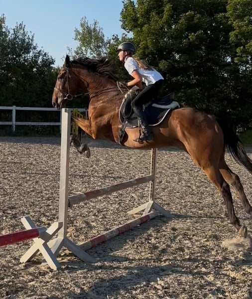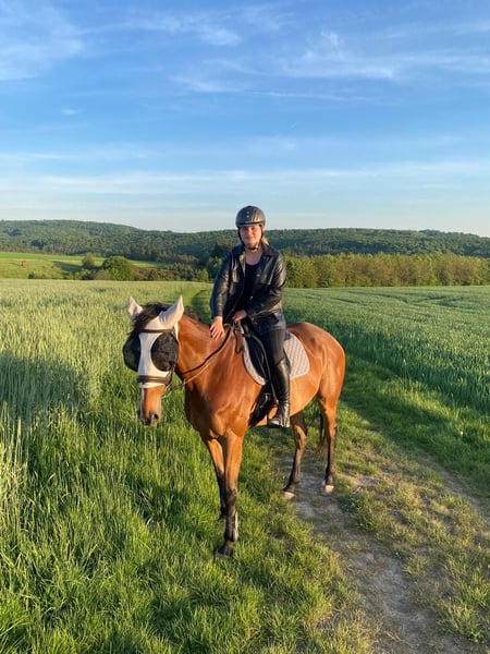 Nuttoridge – Hongre de pur sang, 10 ans, 172 cm – partenaire attachant avec du tempérament Prix : 7 500 € négociable – priorité à la place ! En raison d'une réduction de notre cheptel, nous recherchons pour notre hongre de pur sang de 10 ans, Nuttoridge (taille environ 172 cm), un nouveau foyer adéquat. C'est un ancien cheval de course qui a ensuite été solidement entraîné. Caractère & Manipulation : Au quotidien, c'est un véritable trésor – affectueux, sociable et absolument sans complications. Il a un cœur en or et ferait tout pour son humain une fois qu'il a établi sa confiance. Il peut être manipulé sans problème par des enfants, est ferré uniquement devant et se montre très amical à la ferme. Dans le troupeau, il est très sociable. Particularités : Il a plutôt tendance à être difficile à engraisser, mais s'en sort bien avec une alimentation appropriée. Actuellement, il est seulement ferré devant. Il n'a aucun vice tel que le bucking ou le lever de tête. Montée & Éducation : Sous la selle, il est sage, plein de tempérament et très résistant nerveusement. Il reste calme et gérable même dans des situations inhabituelles – que ce soit monter sous les projecteurs dans l'obscurité, pendant qu'une tente flottante est montée, lorsque la bride se casse au galop ou que des moutons sautent soudainement sur la carrière. (Tout cela s'est déjà produit.) Cependant, il a besoin d'une personne de référence stable lorsqu'il est monté, avec qui il peut établir une confiance. Il n'est donc pas adapté aux débutants, aux cavaliers anxieux ou aux cavaliers revenant à l'équitation. • Saut : sûr dans les parcours E • Dressage : environ au niveau E, mais est actuellement en cours de rééducation lente en raison du manque de cavalier • Extérieur : s'aventure bien en extérieur, mais devient rapidement excité en groupe Place souhaitée : La personne adéquate est plus importante pour nous qu'une décision rapide. Nous souhaitons des cavaliers expérimentés avec une aide calme et claire et un plaisir à avoir un partenaire sensible et désireux d'apprendre. Pour un intérêt sérieux, nous serions ravis de recevoir un message ! Des vidéos sont disponibles sur demande.