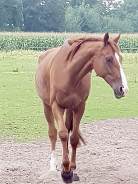 Zum Verkauf steht der 10-jährige englische Vollblutwallach „Recent Approach“ mit einem Stockmaß von ca. 1,67m. Der ausdrucksstarke Fuchs besticht durch seine Feinfühligkeit, Intelligenz und seine enge Beziehung zum Menschen. Recent Approach (Pilo) wurde überwiegend freizeitmäßig geritten und intensiv in der Bodenarbeit gearbeitet. Unter dem Sattel befindet er sich noch in weiterer Ausbildung und möchte behutsam gefördert werden. Er reagiert sehr fein auf Hilfen und braucht einen ruhigen, souveränen Reiter, der ihm Sicherheit vermittelt sich aber auch durchsetzen kann. Aufgrund seiner Sensibilität ist er kein Anfängerpferd. In einem konstanten, verständnisvollen Umfeld zeigt er sich freundlich, lernwillig, kooperativ und stets motiviert. Besonders geeignet ist er für Menschen, die Freude an feiner Kommunikation, Bodenarbeit und der gemeinsamen Weiterentwicklung haben. Pilo wurde frisch osteopathisch behandelt und wird behutsam weiter aufgebaut. Wir wünschen uns für ihn ein liebevolles Zuhause bei einem erfahrenen Pferdemenschen, der auf seine Bedürfnisse eingeht und ihn ruhig und konsequent weiter fördert.