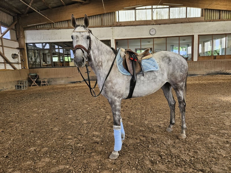 Sometimes, the heart must take precedence over the head and admit that there might be something better out there, a place where the horse can thrive. It is with a heavy heart that I am offering my 10-year-old Thoroughbred gelding for sale. I wish for him to find a place where he can go out and play with his friends. An open stable is not an option, as he needs his peace to graze and rest. Last year, we even won a race together, which I am very grateful for, and I want to give him the best possible future — he truly deserves it. Since January, he has been in a riding stable and has settled in well, becoming familiar with many new things. He is also used to hacking out. He comes from a flat racing background and still has that blood in his veins, so I am not selling him to beginners. He is well-behaved in handling and is regularly trimmed by the farrier. Last year, he broke his splint bone, which is why I took him out of sport. Earlier this year, he had a paddock accident resulting in a second splint bone fracture. Fortunately, everything has healed now. This is not an urgent sale; he will only go to a truly suitable home. Please feel free to contact me with any questions. He is sold **only as a riding horse**. Accessories can be included in the sale. He stands approximately 1.62 meters tall. Location: Ratingen