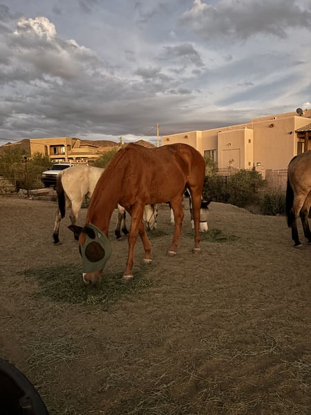 Mac è un grande cavallo con un cuore altrettanto grande. Lo possiedo da quattro anni ed è uno dei cavalli più onesti che abbia mai incontrato; cerca sempre di fare tutto ciò che gli si chiede. Ha provato un po’ di tutto, anche se non l’ho ancora specializzato in nessuna disciplina, ma ha esperienza in barrel racing, salto, trail, prove con bandiere, ha portato una corda e affrontato alcuni ostacoli come il tavolino oscillante, il fiume, i pallet, ecc. Tratta molto bene il rimorchio, si comporta bene con gli altri cavalli, è senza ferri (aveva le scarpe sulla pista) e si ferma bene dal ferratore. Non si spaventa per il traffico o i veicoli rumorosi, è molto tranquillo e rilassato di carattere. Tuttavia, essendo un purosangue, ha molta velocità e ama correre, soprattutto durante le sessioni di galoppo leggero. È rispettoso sia a terra che in sella e apprezza le coccole, specialmente dai bambini delle mie lezioni.