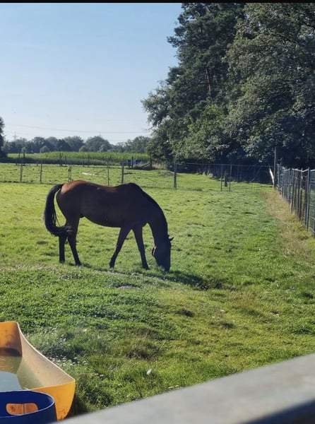 Hallo, ik ben op zoek naar een mooi plekje voor mijn vollebloedruin Papi, helaas met pijn in mijn hart. Hij wordt in februari 13 jaar oud, dus geboren in 2013. Hij heeft nooit op de renbaan gelopen. Papi zoekt iemand die zijn mening kan doordrijven, maar die hem toch liefdevol behandelt. Hij is wat milieugericht en is met mij tot klasse E succesvol uitgebracht op concours. Belangrijk om te weten is dat hij hoefijzers met krammen heeft en deze ook nodig heeft, omdat hij anders iets te plat staat en daardoor hoefzweren krijgt. We hebben dit goed onder controle met de hoefijzers. Hij heeft nu een jaar hoefijzers en gaat er heel goed mee om. Hij is nu drie jaar niet echt gereden; ik heb af en toe eens op hem gezeten, maar dat was het. De eerste reden was de kreupelheid door het ontbreken van hoefijzers, daarna had ik simpelweg te weinig tijd. Omdat hij niet in training is, kan hij ook niet proefgereden worden.