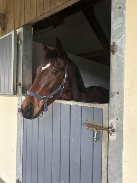 Hongre 2 ans joli modèle, chic, de la taille Débourre en février 2026 méthode Blondeau Famille maternelle, gagnante en plat et en obstacle en France et à l’étranger Visible à côté de Saumur (49)