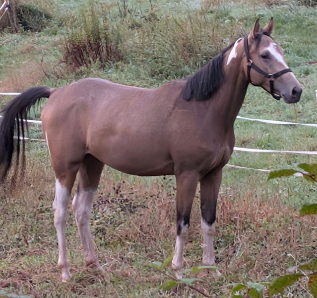 Verkaufe jungen Vollblut /Paint Mix Wallach mit tollem Charakter .geboren im Jahr 2023. Dieser charmante Schecke besticht durch sein freundliches Wesen und seine schönen Grundgangarten . Geronimo ist noch roh sodass er perfekt für jemanden geeignet ist der sich ein junges Pferd selber ausbilden will. Er zeigt sich im Umgang äußerst liebenswert und unkompliziert. Bei Interesse stehe ich gerne für weitere Informationen und eine Besichtigung zur Verfügung.