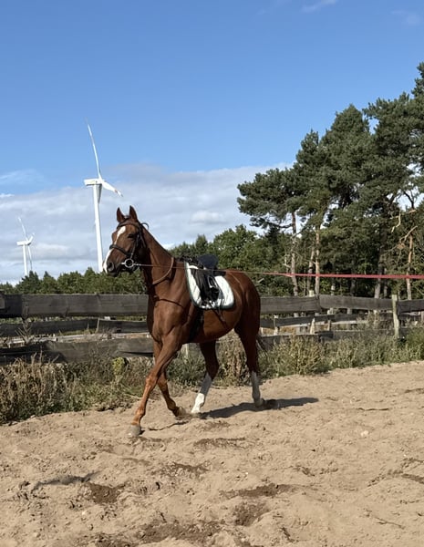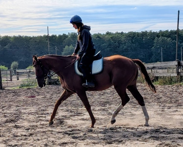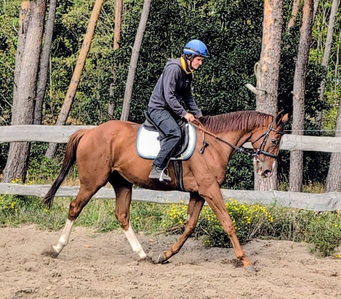 Pauli, 4-letni, grzeczny wszechstronny wałach. Pauli to przyjazny, otwarty i bardzo chętny do nauki wałach w kolorze kasztanowym. Jest spokojny w terenie, zarówno na lonży, jak i podczas pracy w ujeżdżeniu. Młody wałach, przed którym stoją jeszcze wszystkie drogi otworem. Pauli przebywa w dużej, mieszanej stadzie i dogaduje się z wałachami oraz klaczami, jest kowalsko i transportowo spokojny, zaszczepiony, zaczipowany i odrobaczony. W celu uzyskania dalszych informacji lub umówienia się na wizytę proszę o kontakt przez WhatsApp lub telefon! 01633276779 www.pferdestaerke-aktiv.de