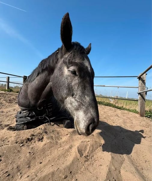Met genuine pijn in mijn hart maakt ik deze advententie aan en bied ik mijn liefste Henry te koop of fulltime lease. Henry is een Engels Volbloed ruin van 157 cm hoog en 4 jaar oud, maar dat zou je niet verwachten als je hem in het echt ziet. Henry is bijna een jaar bij mij geweest, en heeft in deze periode heel veel (geestelijk) gegroeid. Hij kwam als zadelmak, en wij zijn samen op avonduur geweest met het resultaat dat hij ingereden is, en alle basis vaardigheden als rijpaard heeft. Helaas is het zo dat de verder hij in zijn opleiding komt, de duidelijker wordt het dat wij tijdens het rijden helaas geen klik hebben - wat natuurlijk ontzettend veel pijn doet want hij is oprecht een schat van een paard. Na een langere tijd overnadenken heb ik toch tot de conclusie gekomen dat hij een andere baasje verdient die wel deze klik met hem heeft. Henry is ontzettend braaf tijdens het borstelen, vraagt altijd veel aandacht en is ook lekker speels. Een beetje karakter heeft hij ook - hij kan soms wel eigenwijs zijn, net zoals de peuter die hij natuurlijk is. Toch heeft hij heel veel geduld, en laat alles toe: dierenarts, hoefsmid, zadelmaker - niets is een probleem voor Henry. Wij krijgen uiteraard altijd feedback dat hij ontzettend lief is! Het rijden gaat heel goed, hij doet altijd zijn beste en leert heel snel. In dressuur kan hij de basis, en heeft nu zo een balans en tempo dat het nageven ook begint te komen tijdens het rijden. Wij hebben het rustig aan gedaan met het focus op dat het leuk moet blijven liever dan dat hij netjes moet lopen. In de bak is hij liever wat trager dan te snel. Op buitenrit is hij ook ontzettend braaf en bomproef. Hij schrikt niet, kan ook voorop lopen en zelfs als een ander paard vandoor gaat blijft het mogelijk om hem terug te houden en heeft hij altijd een rem. Ook kan hij ook heel hard gaan als je dat wilt! Toen Henry twee jaar oud was heeft hij helaas in zijn ene achterbeen een peesblessure gehad. De vorige eigenaresse heeft hem alle de tijd gegeven om dit te laten genezen voor dat hij zadelmak werd gemaakt. Hij heeft er verder geen last van. Zijn hoeven zijn ook een beetje gevoelig, dus op advies van hoefsmid hebben wij hem op ijzers voor laten staan. Verder kunnen zijn hoeven het wel prima aan, alleen Henry vindt het minder prettig. Hij is verder helemaal gezond. Keuring is nog nooit gedaan, en mag natuurlijk wel bij serieus interesse (k.k). Hij zou in een kudde kunnen staan (hij is wel een underdog, dus moet een goed gebalanceerd kudde zijn), en kan ook op gras staan. Ik bied hem met alle toebehoren aan, en dus ook het zadel. Een goed huis is voor mij wel belangrijker dan de prijs, en is daarom voor het juiste huis onderhandelbaar. Denk je dat je een goed huis zou kunnen aanbieden? Dan zie ik graag een bericht waar je jezelf voorstelt, wat je kan bieden en je ervaring met paarden.
