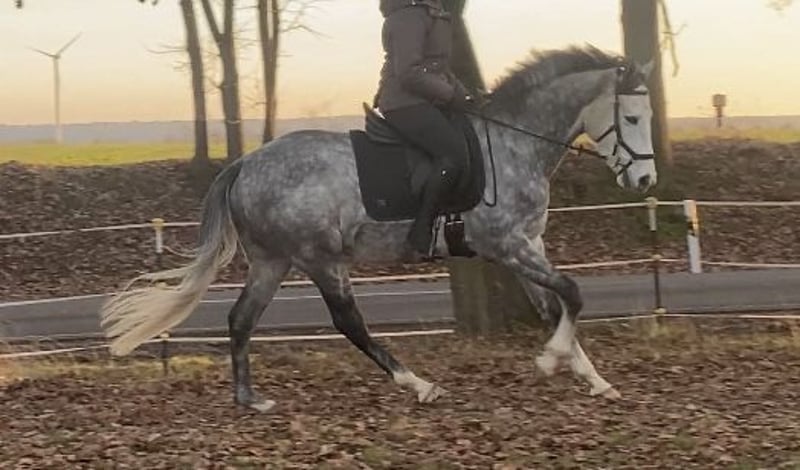 Sehr braver und lieber Wallach sucht seinen Menschen. Er sollte ursprünglich für mich als Springpferd sein, aber es hat sich herausgestellt, dass ihm Dressur und ausreiten mehr Spaß machen, weswegen wir ihm wenn alles passt ein passenderes Zuhause suchen. Er ist sehr gemütlich unterwegs und vermittelt so ein richtig sicheres Reitgefühl und kann auch von schwächeren Reitern und Anfängern geritten werden. Wir wünschen uns allerdings aber jemanden für ihn, der die 3 GGA beherrscht und ihm nicht in den Rücken plumpst, da er doch recht zierlich ist und kein Gewichtsträger. Maximal 75-77 kg ca. Im Umgang und beim reiten hat er sich bei uns immer absolut brav und einfach im handling gezeigt. Steht in gemischter Herde auf 24/7 Gras und Heu und ist eher rangniedrig. Barhuf und kommt super damit zurecht. Keine Krankheiten bekannt. Lief mal ein Rennen aber so langsam, dass er nicht weiter eingesetzt wurde, man kann ihn auch 20 Runden galoppieren ohne dass er schnell wird, eher triebig. Eine AKU ist nicht vorhanden, darf aber jederzeit gerne vom Käufer gemacht werden. Er Besitz volles Papier. Regelmäßig tierärztlich untersucht, geimpft, entwurmt und Zähne gemacht.
