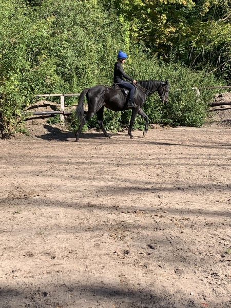 LOBO ist ein schwarzer 4 jähriger Wallach. Er ist gerade erst angeritten. LOBO war nicht auf der Rennbahn. Er mag Menschen und ist sehr verschmust