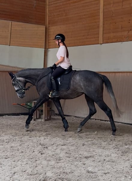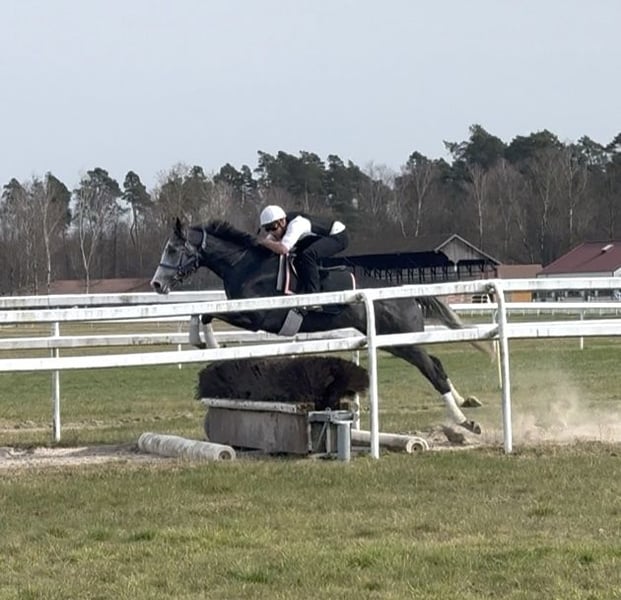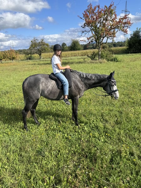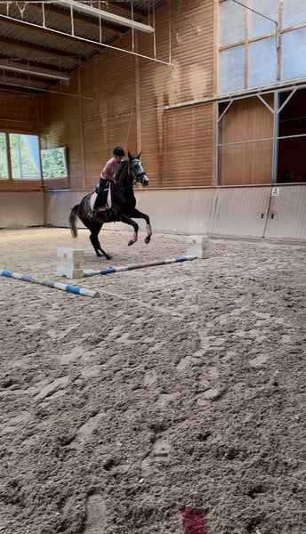Absolutes Traumpferd zu verkaufen! Zum Verkauf steht hier das wohl liebenswerteste und freundlichste Pferd auf Erden. Do it in Paris ist ein 5 jähriger Vollblut Wallach mit einem aktuell stolzen Stockmaß von 1,69m. Sein Charakter ist einfach zu beschreiben LIEB! Er macht wirklich alles mit und hinterfragt nicht. Seit dem er 2 jährig ist befindet er sich bei uns im Stall. Paris war schon immer der absolute Liebling und hat noch nie einen falschen Schritt gemacht. Leider ist er für die Rennbahn zu langsam. Dafür springt er unfassbar toll! Er wurde für Hindernisrennen vorbereitet und ist daher ein absolut sicherer Springer. Er springt wirklich alles und verweigert nie! Daher sehen wir ihn absolut in der Vielseitigkeit. Seine GGA sind auch sehr ansprechend und er macht auch unter dem Dressursattel eine tolle Figur. Seit ca 6 Monaten wird er „umgeschult und hierbei auch von unsere 11 jährigen Tochter mit geritten. Paris kennt Reithalle, Reitplatz, Longe, bunte Stangen und Gelände. Im Gelände geht er in der Gruppe, so wie alleine und ist absolut unerschrocken. Unter dem Sattel lernt er gerade die Basics wie Schritt Trab Galopp Übergänge, Hufschlagfiguren, Schenkelweichen und aussitzen. Er bietet sich mittlerweile toll an und lernt wirklich jeden Tag dazu. Mit unserer Tochter läuft er brav mit Dreieckszügeln und ist sehr vorsichtig. Einzige Manko von unserem Schatz, er koppt. Wir wünschen uns für ihn ein Zuhause, in dem er sehr viel raus kommt, vllt sogar Offenstall, da er hauptsächlich in der Box koppt. Jetzt fragt mal sich, wieso wird dieses Traumpferd verkauft? Ganz einfach, wir haben zu viele Pferde. Es bricht uns wirklich das Herz, aber wir nehmen uns für jedes unserer Pferde viel Zeit und das ist ab einer gewissen Anzahl einfach nicht mehr möglich. Da wir aber keinen Stress beim Verkauf haben und die Zeit mit Paris derzeit sehr genießen und er einfach nur Spaß macht jeden Tag, geht er auch nur wenn das Zuhause perfekt ist. Paris steht im Rennstall und ist daher halbjährlich geimpft und vorne beschlagen. Absolut Verladefromm. Fährt LKW und Anhänger.