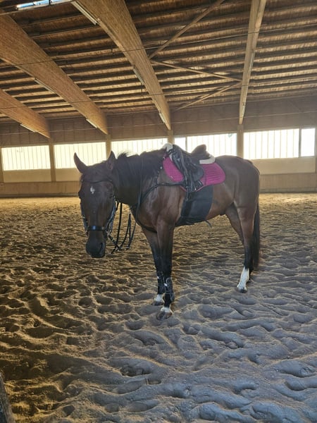 Verkaufe Englischen Vollblut-Wallach Zum Verkauf steht ein wunderschöner, dunkelbrauner Wallach, geboren im Jahr 2019. Mit einem Stockmaß von ca. 150cm ist er perfekt für ambitionierte Reiter die ein Pferd mit viel Go suchen. Sein Schwerpunkt liegt im Springen, wobei er durch seine Athletik und seine Lernbereitschaft überzeugt. Der Wallach zeigt sich im Umgang verschmust, freundlich, aufmerksam und lernwillig. Allerdings ist er oft sehr unsicher und braucht daher unbedingt jemanden, der im Sicherheit gibt und Konsequenz zeigt. Sein Hauptproblem ist, dass er gerne mal "diskutiert" und dann sehr unwillig reagieren kann, wie etwa mit Durchgehen oder Steigen. Er bräuchte daher einen starken Partner. Bei Interesse und für weitere Informationen stehe ich gerne zur Verfügung.