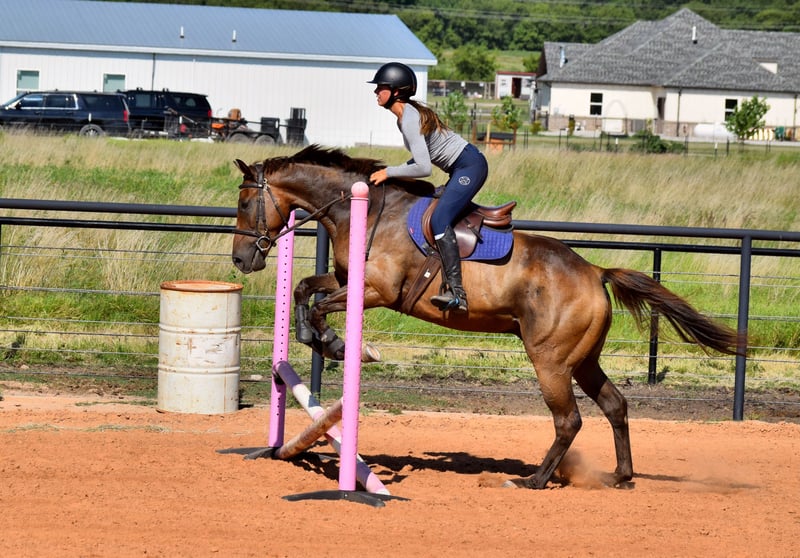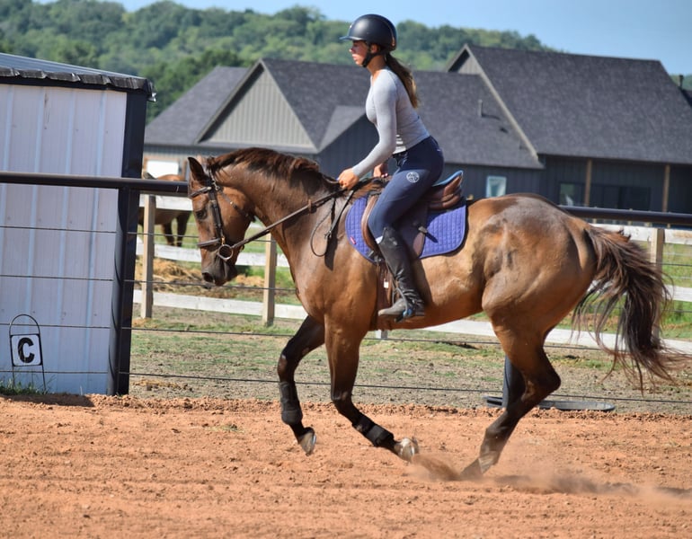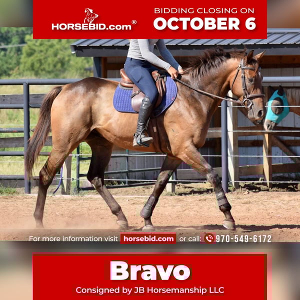 🍂 𝓐𝓾𝓽𝓾𝓶𝓷 𝑨𝑳𝑳 𝑺𝑻𝑨𝑹 𝑳𝑰𝑵𝑬𝑼𝑷 🍂 Happening now thru MONDAY | OCTOBER 6th - Available EXCLUSIVELY on HorseBid's website! For more details and to register visit: www.Horsebid.com CONSIGNOR CONTACT: JB Horsemanship LLC 970-549-6172 LOCATION: McCurtain, OK BREED: Thoroughbred REGISTERED: Yes REGISTERED NAME: Sazon COLOR: Bay HEIGHT: 16.1 AGE: 5 GENDER: Gelding We are proud to introduce “Sazon” aka Bravo, currently in training and recently consigned with JB Horsemanship LLC. He is a 2020 bay Thoroughbred gelding, standing at 16.1 hands, registered with the Jockey Club. This boy is oftentimes mistaken for a Warmblood Cross at horse shows! His sweet temperament and extreme willingness is perfect for any adult amateur or young/jr rider. He is just a rockstar, has an old soul, is forward thinking, brave and easy to ride and handle in every way. Talented jumper and eventer guaranteed to succeed! He is a great traveler that settles easily into new places. Bravo is best suited for a rider looking to start their eventing career, or for an individual seeking a talented partner to progress through the levels. He demonstrates bravery and forgiveness, with lots of scope and try, making him a prime candidate for amateur or young riders to develop their skills. Bravo is not spooky and is confident going into new places and over never-seen-before jumps, helping to build confidence in young riders. Not interested in competing or jumping? He would also make someone a lovely trail or flatwork partner. He is a steady ride that excels in the dressage arena and out on the trail alone or with a group. Bravo has been pastured with others and stabled alone with no issues. No kick, bite, buck, bolt, etc. Bravo is healthy and sound with no vices. No maintenance history. Clips, bathes, ties, hauls with ease. Front shoes, barefoot behind. Current negative coggins and ready to find his next partner! Bravo will remain in training with JB Horsemanship and showing with teen event rider until sold. Located in McCurtain, OK. Feel free to reach out with any questions or to schedule a time to come try him at 970-549-6172!