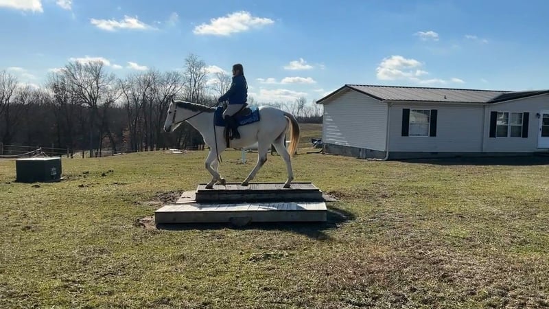 """AVAILABLE ON ONLINE HORSE AUCTION AT www.MagicHorseAuction.com BIDDING OPEN NOW thru TUESDAY | FEBRUARY 3RD! BUY IT NOW AVAILABLE! *Final price will be determined on auction site* CONSIGNOR CONTACT INFO: DEBBIE GRIER #859-272-7751 LOCATION: LEXINGTON, KY""" Owen is a big, beautiful, thoroughbred grey gelding and is VERY quiet and laid back.. He will ride english or western. He loves to walk on trail rides and take it easy. He has a very smooth trot when asked. He will ride in the arena or down the trail. We have done trail obstacles with him and he is very willing to do what is asked of him. He stands 16'2 hands and is a 7 yr old gelding