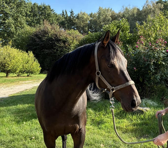Flying Rocket is a healthy, robust VB gelding who is looking for "his" person for a second career as a leisure horse. He is currently out in the pasture with a friend, stabled at night, and goes to the walker daily. Under saddle, he is always in good spirits and full of energy, not a beginner's horse ;-)