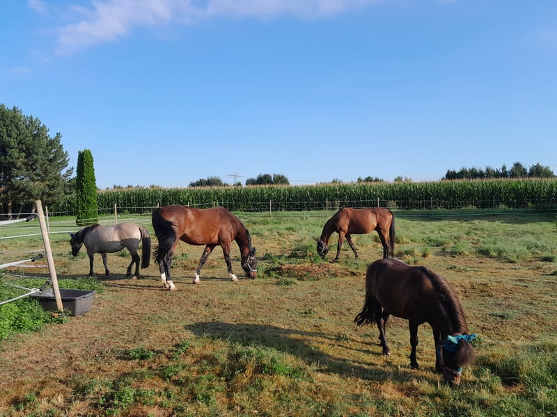 Zum Verkauf steht mein 8 jähriger Wallach Diarrigo. Er hat ein Stockmaß von ca. 162 cm. Er ist ein sehr freundliches, aufmerksames und zugewandtes Pferd, das nun auf der Suche nach einem Menschen ist, der sich täglich mit ihm beschäftigt und bei dem er im Mittelpunkt stehen darf. Diarrigo wurde die letzten Jahre hauptsächlich freizeitmäßig von einer Jugendlichen geritten und gesprungen. Er ist sehr fein zu reiten und befindet sich im Pacour auf guten A Niveau einzelne Sprünge auch L-M Niveau. Seines Potentials ist die Dressurarbeit definitiv nicht seine Leidenschaft, weswegen er auch nicht als Dressurpferd, sondern wirklich als Freizeitpferd-/Springpferd bzw. Allrounder verkauft wird. Er macht nämlich auch einen Tollen Job als Anfänger/Kinderpferd durch seine Ruhige Art beeindruckt er jedes kleines Kind! Er ist kein Gewichtsträger. Am liebsten wäre uns eine Person, die wirklich hauptsächlich ins Gelände gehen mag und sich dabei auf ein Pferd freut, das immer genug Power hat. Er kennt es auch Baumstämme im Gelände aus den unmöglichsten Winkeln zu springen und ist ein richtiges Spaßmobil wenn man springen mag;). Er wird als Wiedereinsteiger-/Anfänger-/Kinderpferd verkauft! Er kennt Boxenhaltung und Offenstallhaltung. Er hat keine Allergien. Er ist nicht beschlagen und läuft schon immer Barhuf. Er hat immer alle Impfungen bekommen und wurde regelmäßig entwurmt. Wir wünschen uns wirklich ein schönes, wertschätzendes Zuhause für ihn, das ist uns sehr wichtig. Wenn ihr das Gefühl habt, dass er zu euch passen könnte, dann kontaktiert uns sehr gerne und wir können einfach mal quatschen und schauen ob es passt, bzw. Fragen jeglicher Art klären. Videos aus dem Alltag sind vorhanden. Preis ist mit Zubehör würde ihn aber auch ohne abgeben. WhatsApp/Handy: 01512 0035349