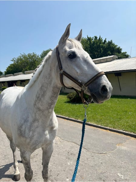 **Sales Advertisement: Thoroughbred Gelding** We are looking for a new home for our incredibly talented Thoroughbred gelding. **Features:** - **Breed:** Thoroughbred - **Gender:** Gelding - **Year of Birth:** 2017 - **Color:** Grey - **Height:** 160 cm This incredibly talented gelding shows great potential in show jumping and has already achieved initial successes in this discipline. He is well-trained, eager to learn, and has a friendly character that makes him an ideal partner for experienced riders. No matter where you unload him, he is always right by your side and does not shy away. He has no vices, is always kind, and is a true reliable horse. He has a heart like a lion! With his athletic build and excellent jumping technique, he is ideal for ambitious riders who want to be successful both in training and at competitions. He is well-mannered, well-socialized, and has already gained competition experience. His balanced temperament makes him interesting for both experienced riders and ambitious amateurs. Multiple wins and placings in 130/135 cm. If you are interested or would like more information, please feel free to contact me. Visit us and see for yourself this wonderful horse!