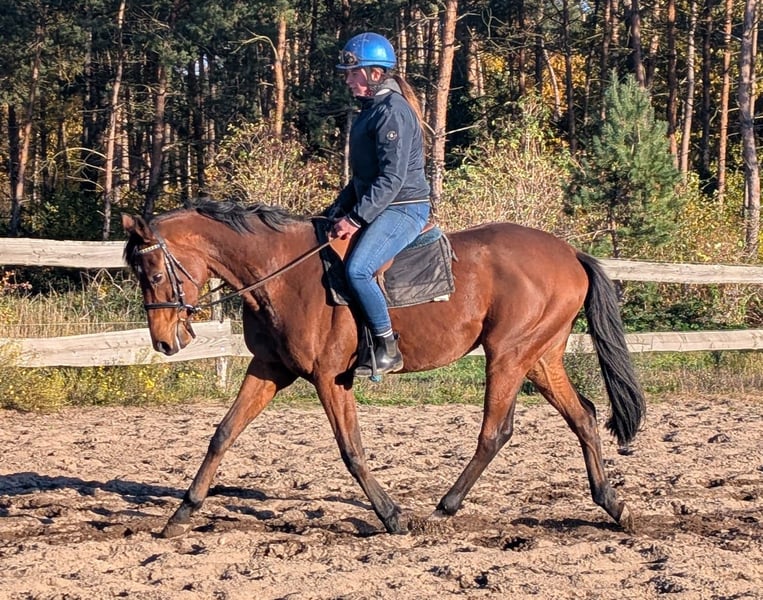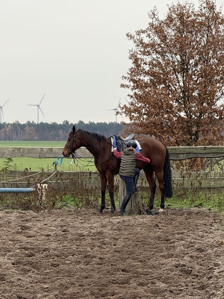 Saba ist ein brauner 166 cm großer hübscher Vollblutwallach. Er ist 2018 geboren und ein sehr ausgeglichener, ruhiger Charakter. Saba geht halbtags in einer großen gemischten Herde bei jedem Wetter raus. Er kennt aber auch 24 Stunden Weidehaltung. Er ist ein unkomplizierter, unerschrockener Wallach der auch für junge Reiter und Wiedereinsteiger geeignet ist. Er verzeiht Reitfehler und geht auch an der Longe sehr brav. Wir hatten ihn eine zeitlang Barhuf damit kam er aber nicht gut zurecht und jetzt hat er wieder vorne Eisen drauf. Er hat gute Hufe und ist absolut Schmiede- ind Verladefromm. Ein durchweg braves Freizeitpferd für jedermann Bei Interesse oder Fragen gerne per WhatsApp oder Anruf melden 01633276779
