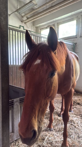 Fuchswallach - 9 Jahre alt - ca 165cm - brav und neugierig - schön dressurmässig zu reiten - macht auch kleine Sprünge - geht bra ins Gelände, läuft aber auch mal einen Schritt schneller - mal sollte also sicher sitzen (ansonsten langsam aufbauen) - kein reines Kinderpferd - Schmiede und verladefromm - keine Unarten Wir wünschen uns: Ambitionierten Freizeitreiter, jemand der regelmäßig Training reitet und/ oder auch schon gut reiten kann. Vorstellbar für Vielseitigkeit. Keine bekannten Krankheiten oder Befunde. Geht barhuf. Kennt gemischte Herde oder auch reine Wallachherde. Kennt boxenhaltung und tagsüber Paddock und Weide. Sattel und weiteres Zubehör ist im Preis mit drinnen. Steht in 06679 Webau