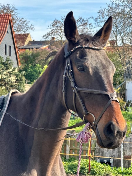 Joker ist ein 9-jähriger Vollblutwallach. Als er zu uns kam, war er in einem deutlich untergewichtigen und schlechten Allgemeinzustand. In den letzten 5 Monaten hat er sich bei uns sehr gut entwickelt, körperlich aufgeholt und ist nun bereit, wieder behutsam ins Training einzusteigen. Aktuell lebt Joker im Offenstall in einer reinen Wallachherde mit 24/7 Heuversorgung und ist dort gut integriert. Er kennt das Herdenleben und genießt viel Bewegung. Im Umgang zeigt er sich sensibel und aufmerksam. Hektische oder unruhige Bewegungen mag er nicht, daher braucht er einen ruhigen, sicheren Menschen, der ihm klare Orientierung gibt. Wenn ihm etwas nicht passt, kommuniziert er das deutlich – ein ehrlicher Charakter, der verstanden werden möchte. Er besitzt drei gute Grundgangarten mit Schwung und Bewegungsqualität. Die Arbeit an der Longe haben wir begonnen, wobei er sich motiviert zeigt und beginnt, sich besser zu tragen. Wichtig zu wissen: Joker bekommt bei uns Alpenmesh. Eventuell könnte eine Haltung in einer Stutenherde für ihn passend sein. Ob er damit besser zurechtkommt, können wir aktuell jedoch nicht sicher beurteilen. Joker wird nicht als Anfängerpferd abgegeben. Er sucht einen erfahrenen Menschen mit Geduld, der Freude daran hat, ein sensibles Pferd weiter auszubilden und ihm Sicherheit zu geben. Bei ernsthaftem Interesse freuen wir uns über eine Nachricht mit kurzer Vorstellung.