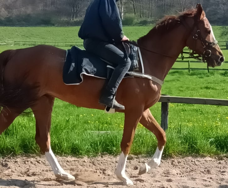 Large, strong 8-year-old Thoroughbred gelding Red Storm, suitable for flat racing or leisure riding. Red Storm is a successful flat racing horse over long distances (> 2,400 meters) and prefers soft ground. One of his impressive starts and finishes, winning at Hannover, can be seen in the YouTube video: https://www.youtube.com/watch?v=lMiXI0jrXrk (last race in the video). Red Storm's pedigree on the sire side includes Samum, Monsun, and Königsstuhl, while his dam line features Platini, Surumu, and Literat. Only the best bloodlines from the Thoroughbred racing world. Currently, Red Storm is on a summer break. Training is scheduled to resume in November. He is offered either as a leisure horse or as an ideal mount for an owner-trainer in flat racing. Further details can be discussed comfortably in an initial phone call.