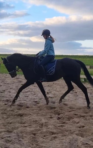 With a heavy heart, I am selling my 10-year-old mare. Height: 1.60 m Gentle on outdoor rides, etc. She makes nice jumps and can perform well in dressage. Has participated in a few dressage practice competitions. Prefers to go forward rather than be slow, so not suitable for beginners. Currently not in work due to studies and other interests. She is not exhibiting any respiratory issues apart from occasional air-sucking while eating pellets. Needs to be backed, which is why she is reasonably priced. Price negotiable for quick transactions. For videos and messages, please contact: 0611517604