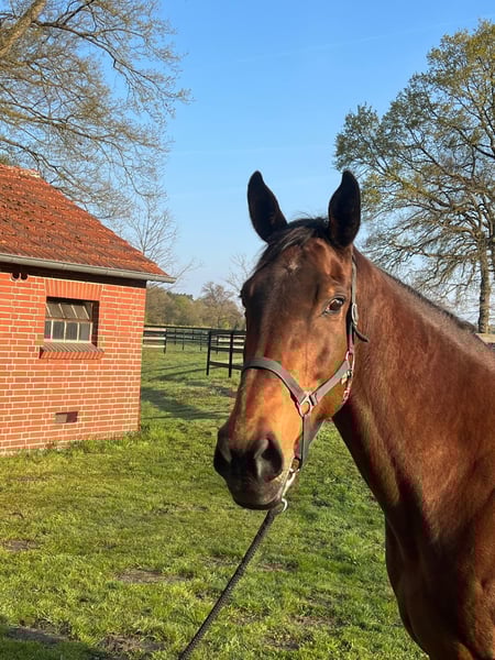 Eva Perone ist von Fastnet Rock aus einer Monsun Stute. Sie hat bisher 3 lebende Fohlen. Der Erstling ist nach Serbien verkauft, die zweite Stute ist siegreich gewesen und die dritte Stute kann im Gestüt mit besichtigt werden ( Einjährige von Torquator Tasso, ist auch abzugeben). Eva Perone ist ebenso für die Warmblutzucht geeignet, wobei in Ihrer Familie in England auch siegreiche Hindernispferde sind. Sie lässt auch schon mal ein zweites Fohlen saugen, wenn sie auf Dauerweide ist.